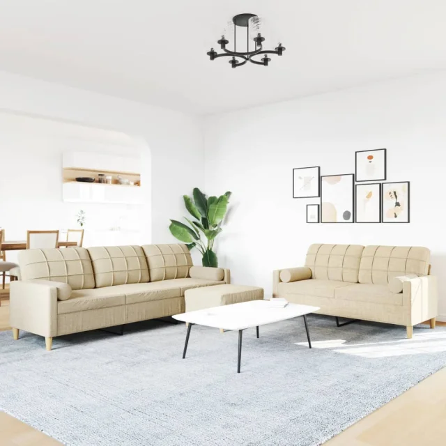 vidaXL Sedežna garnitura 3-delna s stolčkom in blazinami krem blago