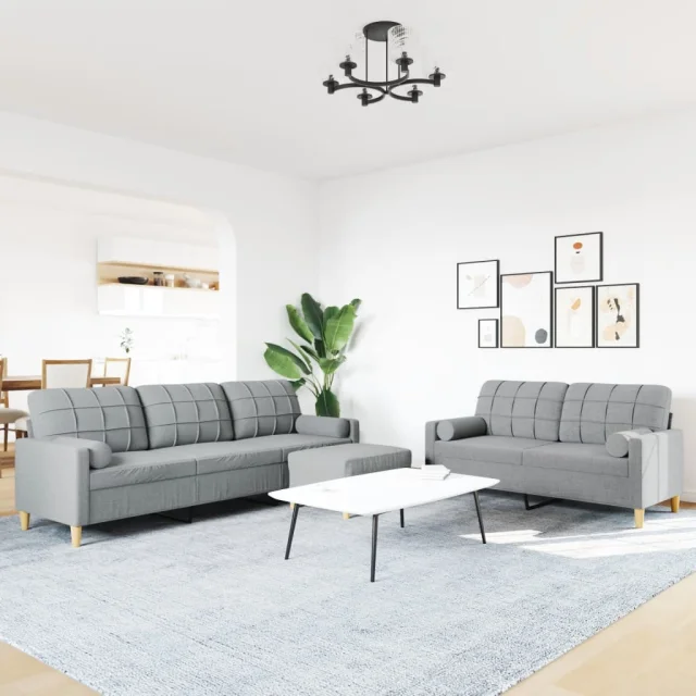 • Trden in stabilen okvir: Kovinski okvir sedežne garniture iz blaga zagotavljata trdnost in stabilnost.