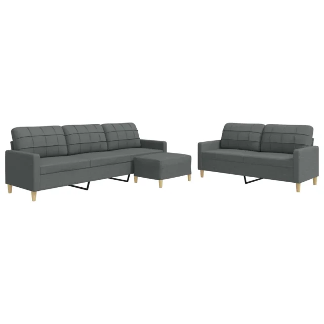 vidaXL Sedežna garnitura 3-delna s stolčkom temno sivo blago