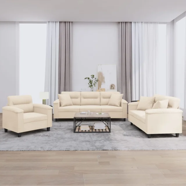 vidaXL Sedežna garnitura 3-delna z blazinami bež mikrovlakna