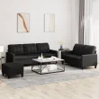 vidaXL Sedežna garnitura 3-delna z blazinami črno umetno usnje