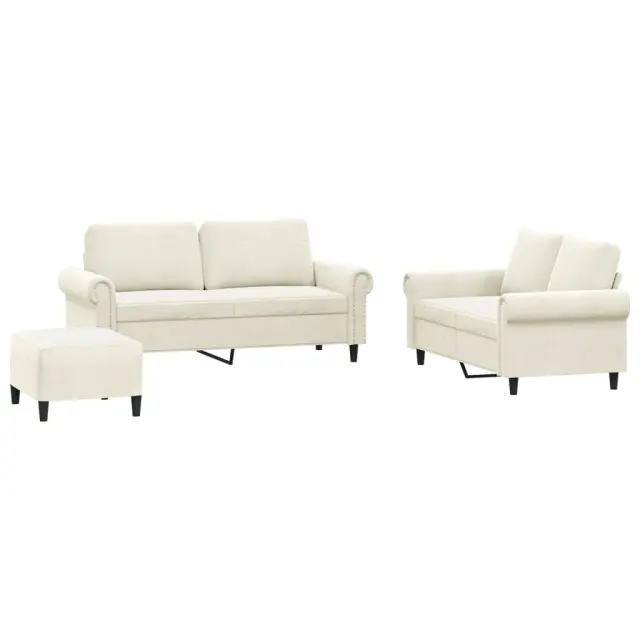 vidaXL Sedežna garnitura 3-delna z blazinami krem žamet