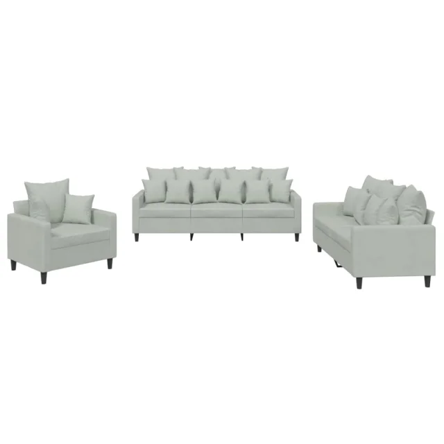 vidaXL Sedežna garnitura 3-delna z blazinami svetlo siv žamet