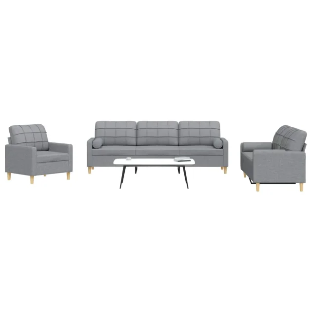 vidaXL Sedežna garnitura 3-delna z blazinami svetlo sivo blago