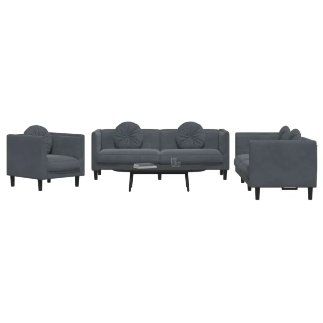 vidaXL Sedežna garnitura 3-delna z vzglavniki temno siv žamet