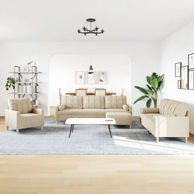 • Trden in stabilen okvir: Kovinski okvir sedežne garniture iz blaga zagotavljata trdnost in stabilnost.