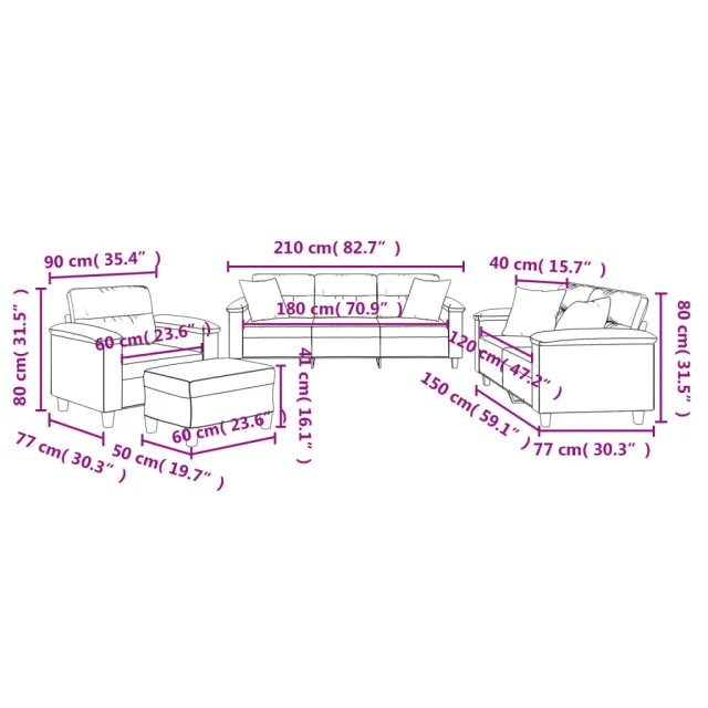 vidaXL Sedežna garnitura 4-delna z blazinami bež mikrovlakna