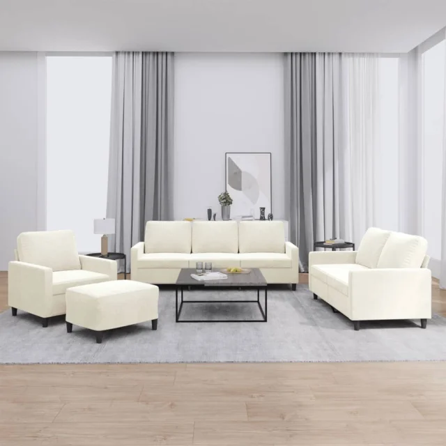 vidaXL Sedežna garnitura 4-delna z blazinami krem žamet