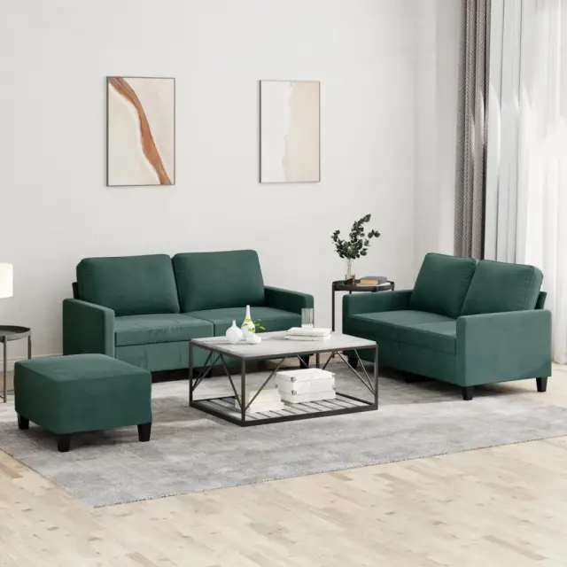 vidaXL Sedežna garnitura 3-delna z blazinami temno zelen žamet