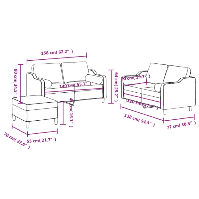• Dimenzije stolčka za noge: 70 x 55 x 41 cm (Š x G x V)