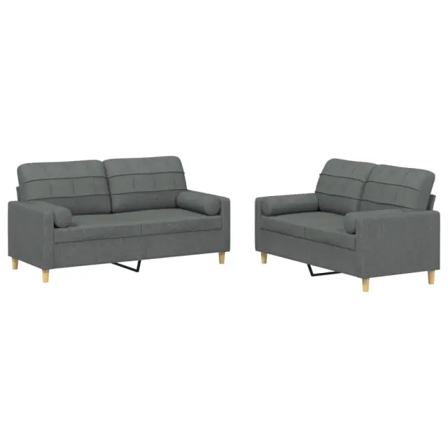 vidaXL Sedežna garnitura 2-delna z vzglavniki temno sivo blago