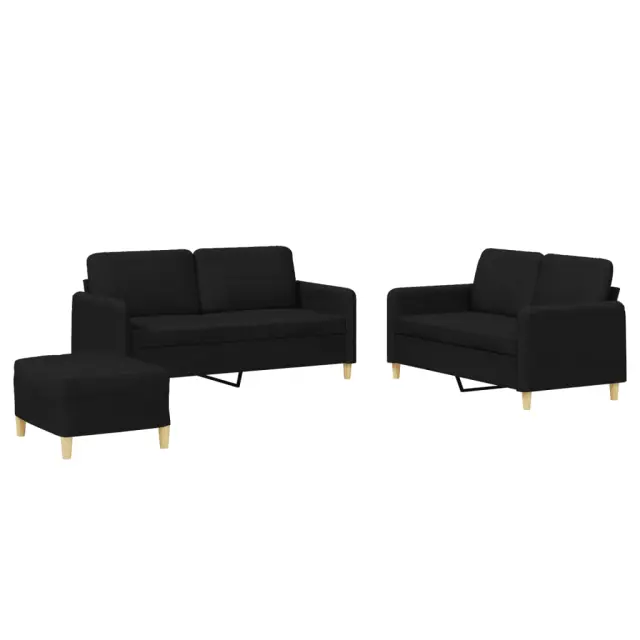 vidaXL Sedežna garnitura z blazinami 3-delna črno blago