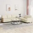 vidaXL Sedežna garnitura 2-delna z blazinami krem umetno usnje