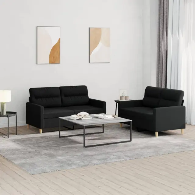 vidaXL Sedežna garnitura 2-delna z blazinami črno blago