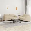 vidaXL Sedežna garnitura 2-delna z blazinami krem mikrovlakna