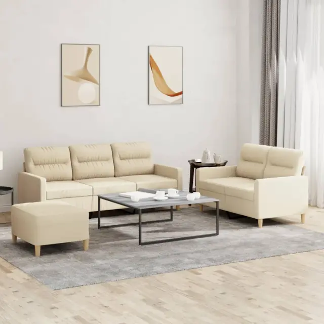vidaXL Sedežna garnitura 3-delna z blazinami krem blago