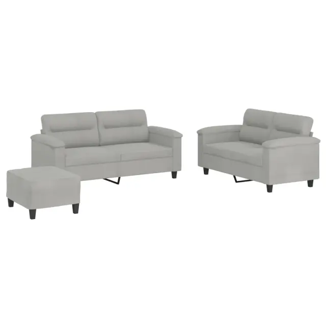 vidaXL Sedežna garnitura 3-delna z blazinami svetlo siva mikrovlakna
