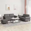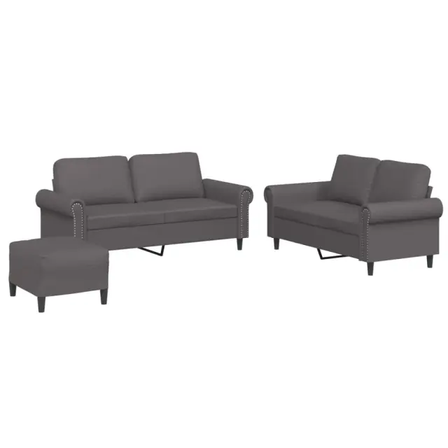 vidaXL Sedežna garnitura 3-delna z blazinami sivo umetno usnje