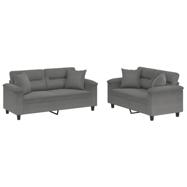 vidaXL Sedežna garnitura 2-delna z blazinami temno siva mikrovlakna