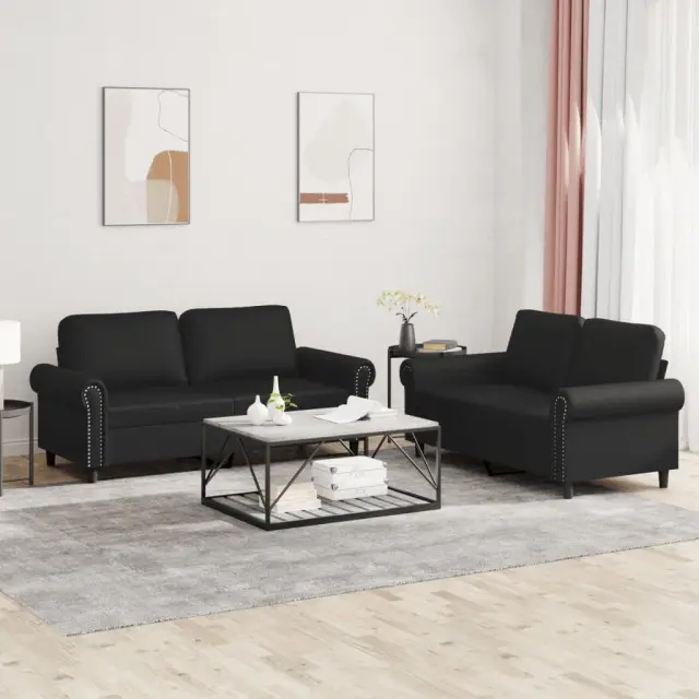 vidaXL Sedežna garnitura 2-delna z blazinami črno umetno usnje