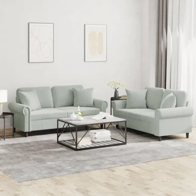 vidaXL Sedežna garnitura 2-delna z vzglavniki svetlo siv žamet