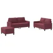 vidaXL Sedežna garnitura z blazinami 3-delna vinsko rdeče blago