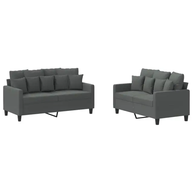 vidaXL Sedežna garnitura z blazinami 2-delna temno sivo blago