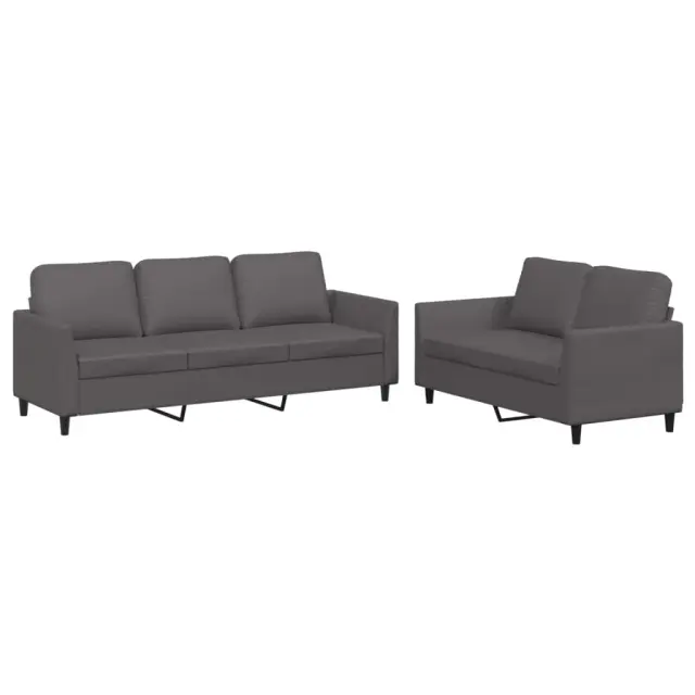 vidaXL Sedežna garnitura 2-delna z blazinami sivo umetno usnje
