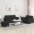 vidaXL Sedežna garnitura 3-delna z blazinami črno umetno usnje