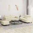 vidaXL Sedežna garnitura 3-delna z blazinami krem umetno usnje