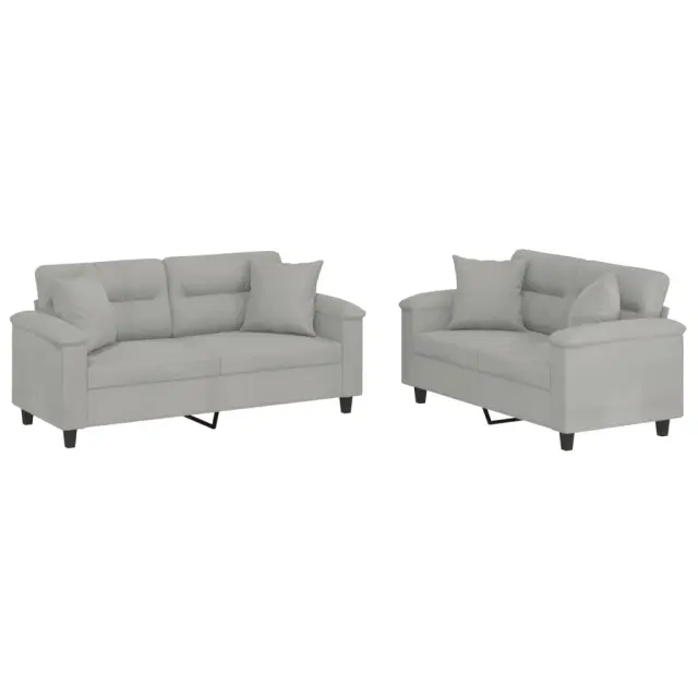 vidaXL Sedežna garnitura 2-delna z blazinami svetlo siva mikrovlakna