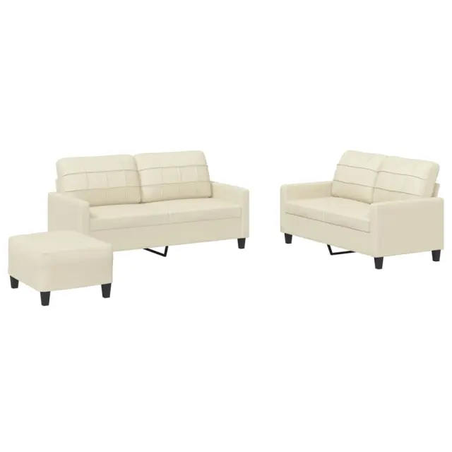 vidaXL Sedežna garnitura 3-delna z blazinami krem umetno usnje