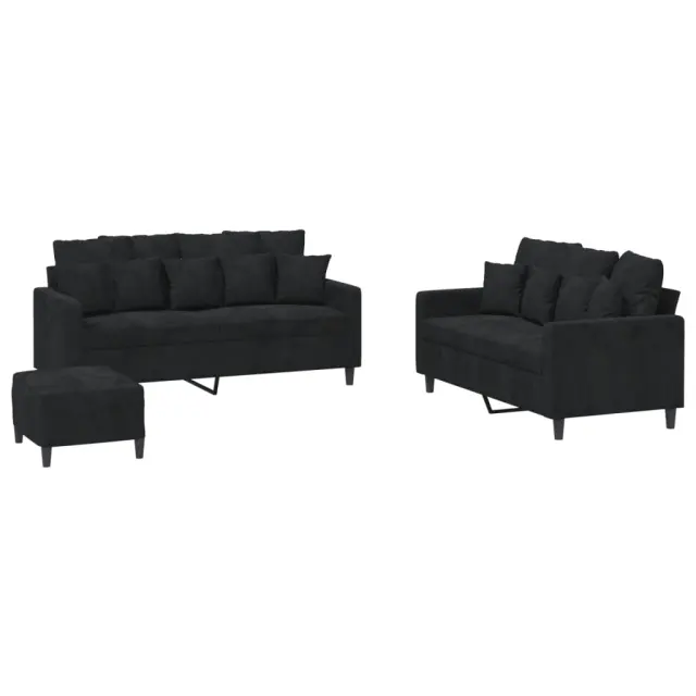 vidaXL Sedežna garnitura 3-delna z blazinami črn žamet