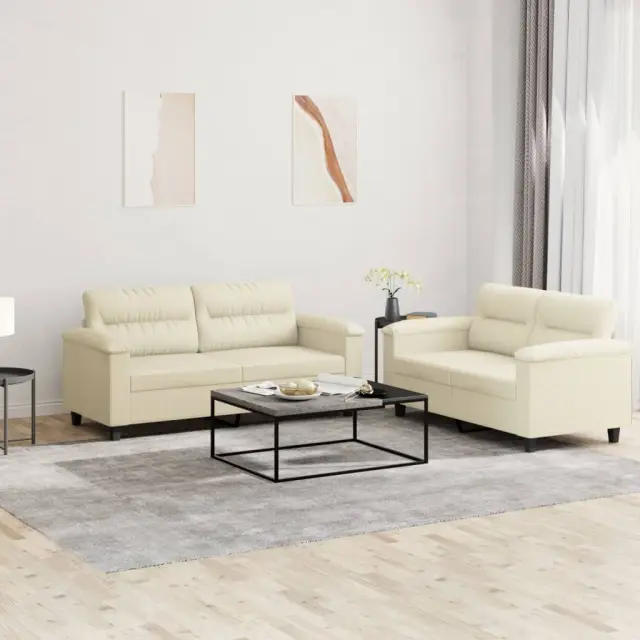vidaXL Sedežna garnitura 2-delna z blazinami krem umetno usnje