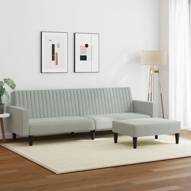 vidaXL Sedežna garnitura 2-delna svetlo siv žamet