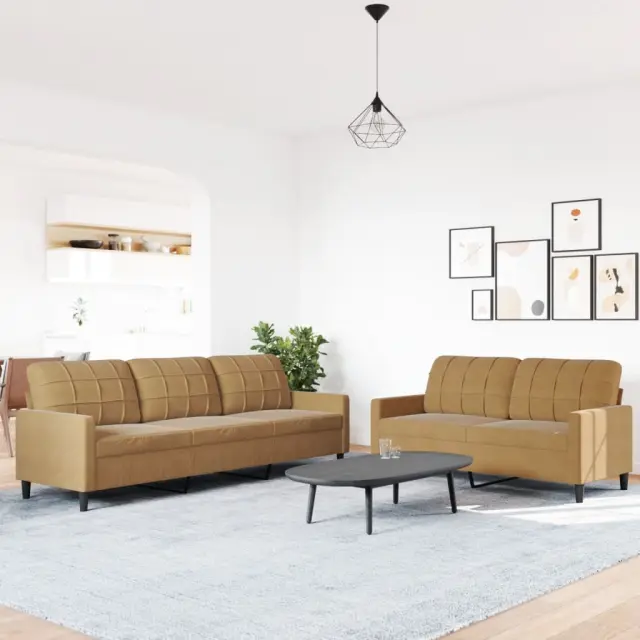 vidaXL Sedežna garnitura 2-delna z blazinami rjav žamet