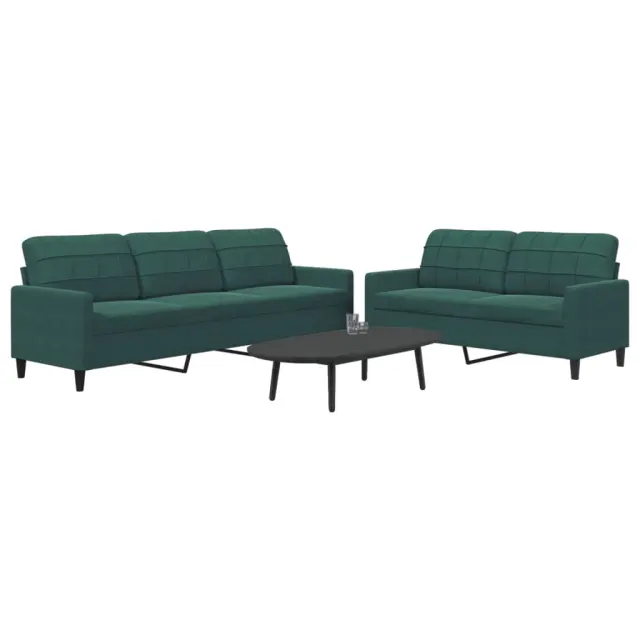 vidaXL Sedežna garnitura 2-delna z blazinami temno zelen žamet