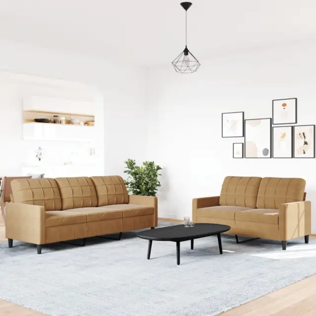 vidaXL Sedežna garnitura 2-delna z blazinami rjav žamet