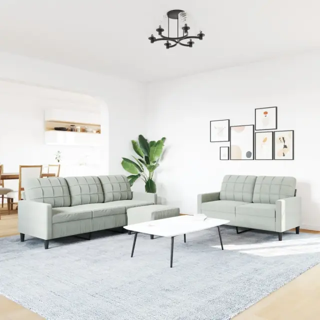 vidaXL Sedežna garnitura 3-delna z blazinami svetlo siv žamet