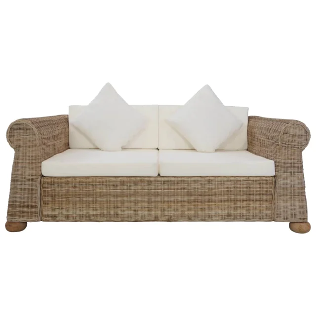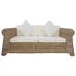 vidaXL Sedežna garnitura z blazinami 2-delna naravni ratan