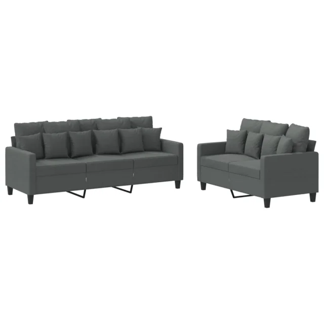 vidaXL Sedežna garnitura z blazinami 2-delna temno sivo blago