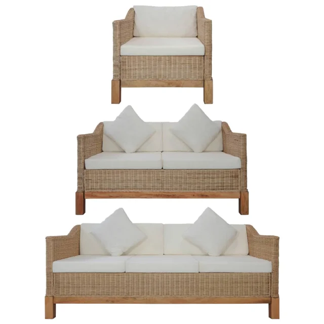 vidaXL Sedežna garnitura z blazinami 3-delna naravni ratan