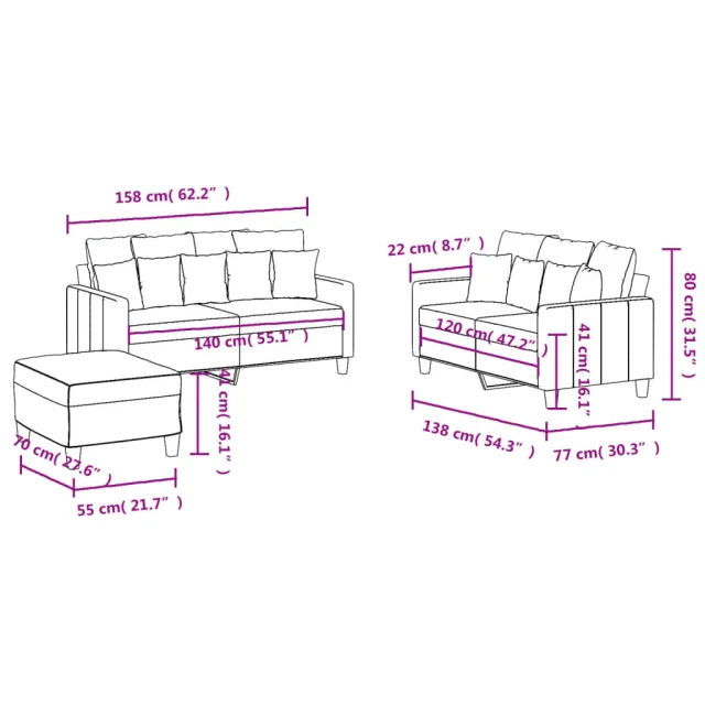 vidaXL Sedežna garnitura z blazinami 3-delna rjavo blago