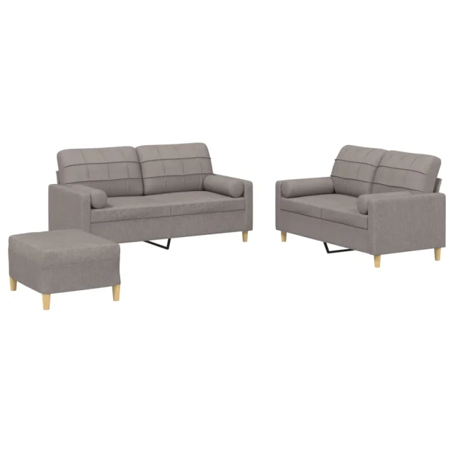 vidaXL Sedežna garnitura z vzglavniki 3-delna taupe blago