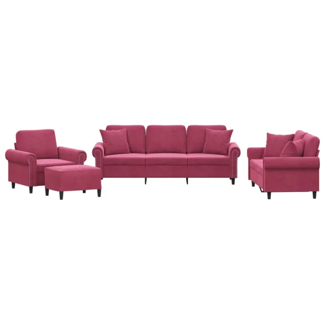 vidaXL Sedežna garnitura z vzglavniki 4-delna vinsko rdeč žamet