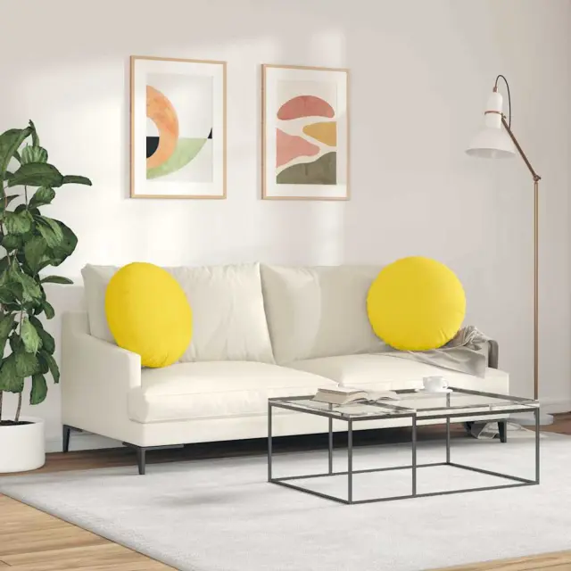 vidaXL Sedežne blazine 2 pcs Svetlo rumena Ø50 x 19 cm blago
