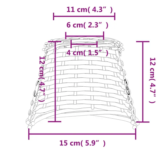 vidaXL Senčilo za stropno svetilko rjavo Ø15x12 cm pleteno