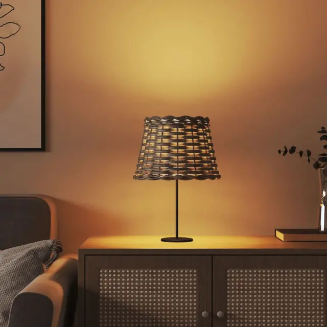 • Zanesljiva podpora: Pleteno senčilo za svetilko ima lakirano železno držalo, v katerem je varno nameščena žarnica.