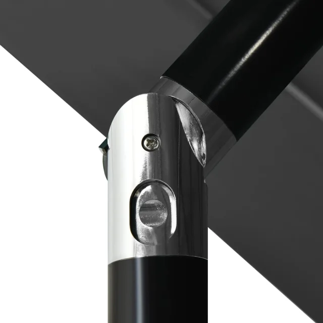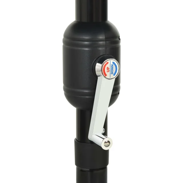 Zunanji senčnik je izdelan iz nebledljivega poliestra z UV zaščito, zato lahko zagotovi optimalno zaščito pred soncem. Prašno premazan aluminijast drog in rebra zagotavljajo stabilnost. Zahvaljujoč ročici in možnosti nagibanja je senčnik zložljiv in prenosen. Postavite ga lahko na podstavek za senčnik ali na sredino mize, če ima odprtino za senčnik.