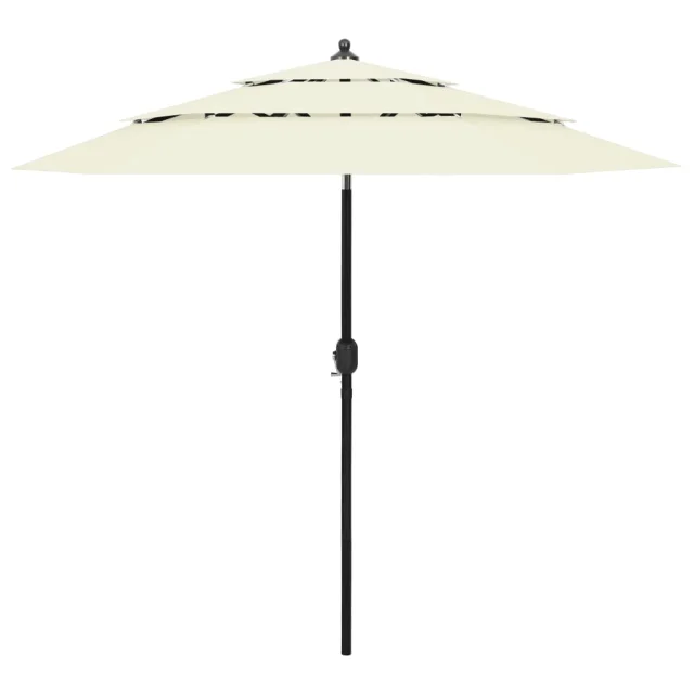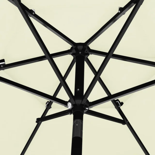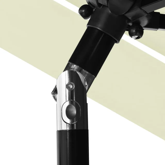 Zunanji senčnik je izdelan iz nebledljivega poliestra z UV zaščito, zato lahko zagotovi optimalno zaščito pred soncem. Prašno premazan aluminijast drog in rebra zagotavljajo stabilnost. Zahvaljujoč ročici in možnosti nagibanja je senčnik zložljiv in prenosen. Postavite ga lahko na podstavek za senčnik ali na sredino mize, če ima odprtino za senčnik.